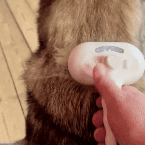 Tryck på knappen så lossnar pälsen direkt. Snabbt, enkelt och utan kladd.